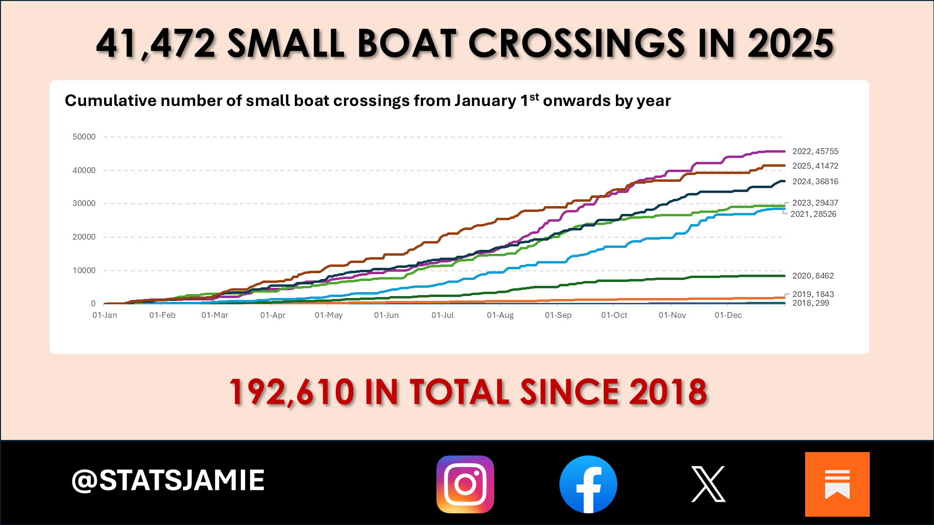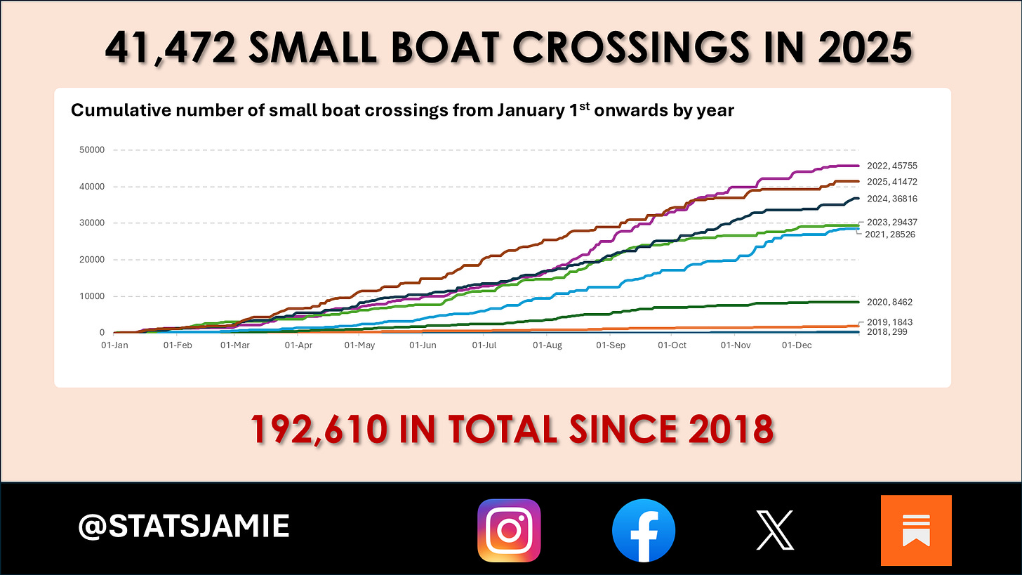 41,472 illegal boat crossings in 2025, the total now up to 192,610