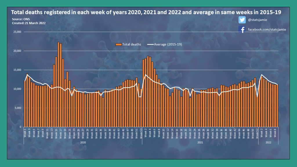 The Covid death toll of 185,000 will most likely include people who would have sadly died in the virus's absence and, as I previously explained, we saw fewer dementia deaths than average through some parts of the pandemic. Excess deaths give a better picture of the true impact of Covid, but as we move further on from March 2020, there will be people dying of other causes because of missed healthcare. I wrote last summer we were seeing deaths above average that were not Covid related.