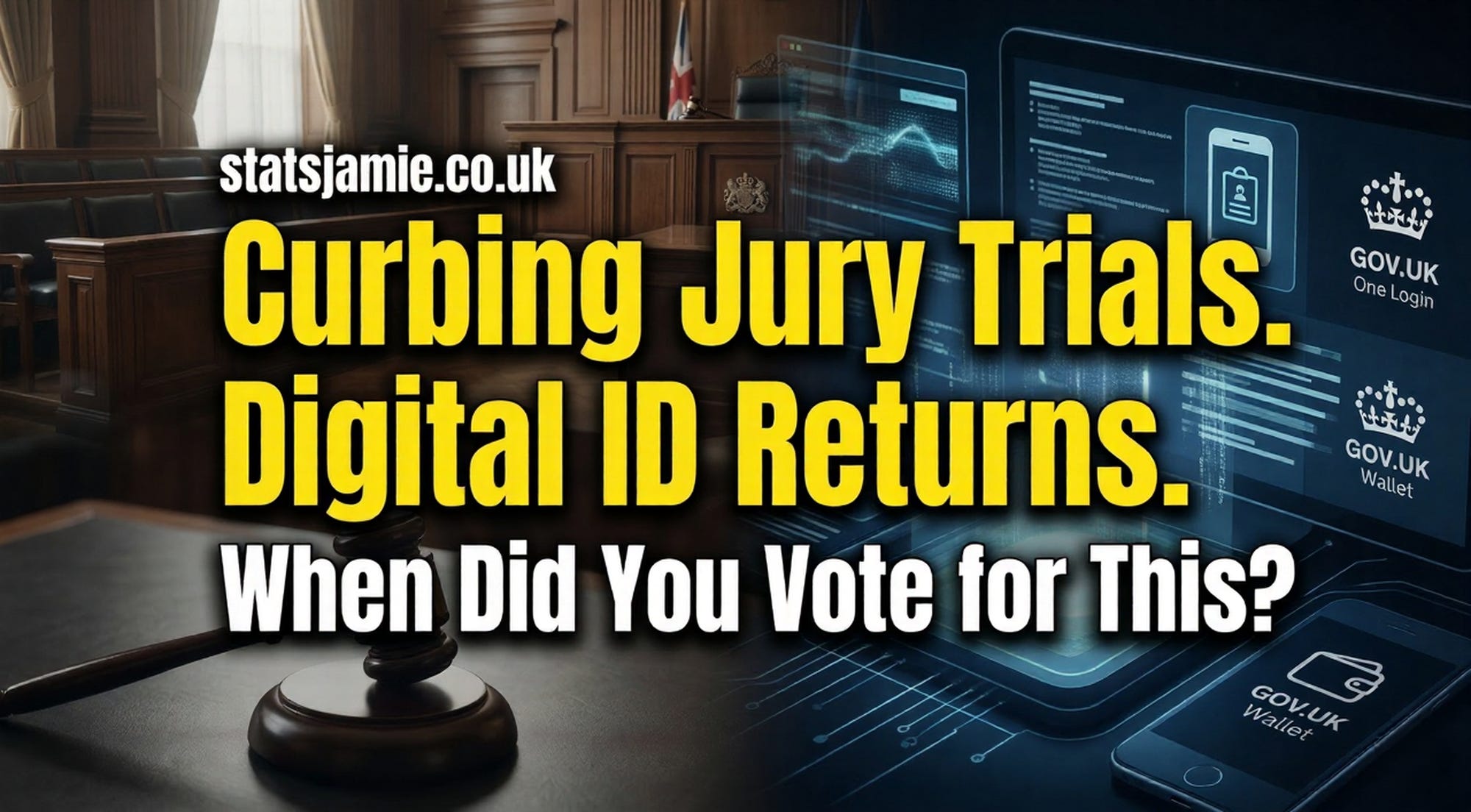 For months, I’ve been warning about two things moving quietly in the background: curbs on jury trials and digital ID by the back door. This week, Labour pushed ahead on both. MPs voted on 10 March 2026 to give the Courts and Tribunals Bill its second reading, while ministers also launched a consultation on a new digital identity system built around GOV.UK One Login and GOV.UK Wallet.