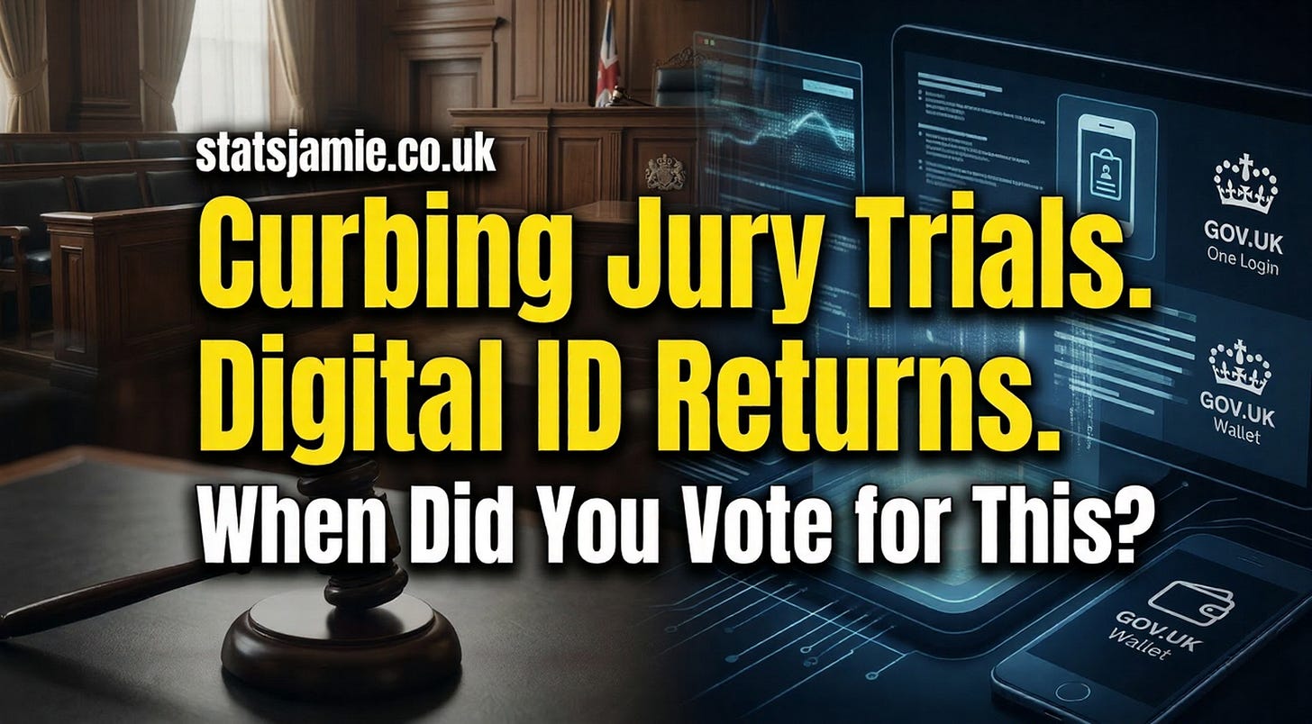 These are not minor technical tweaks. One affects how justice is delivered in England and Wales. The other affects how you prove who you are to the state. And in neither case was the public clearly asked for permission in plain English at the last election. Labour’s 2024 manifesto talked about reforming justice and tackling delays, but it did not clearly tell voters it would curb access to jury trial in this way, and it did not clearly set out a national digital ID system for accessing public services.