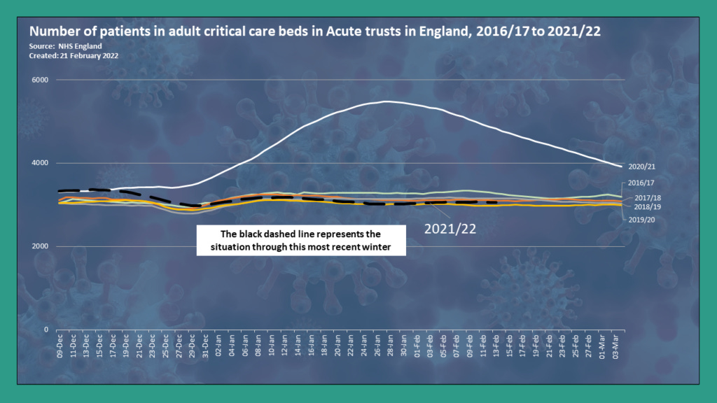 Winter 2021/22 seen fewer patients in adult critical care than recent winters