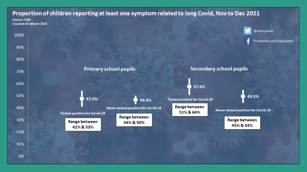 The ONS estimates that 1% of primary school-aged pupils and 2.7% of secondary school-aged pupils met the criteria for having experienced long Covid lasting at least 12 weeks. The definition is a positive test, symptoms for at least 12 weeks and they affect everyday life. But we know there are children who did not have a positive test who experience symptoms related to long Covid for a period of over 12 weeks. No doubt for some, they will affect their everyday life.