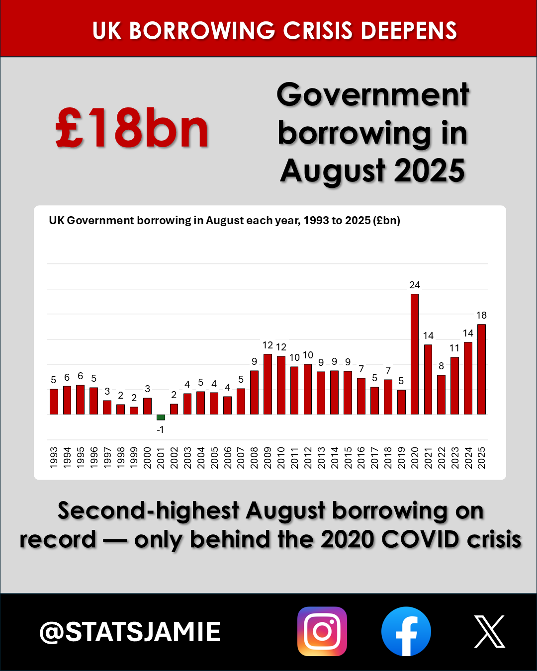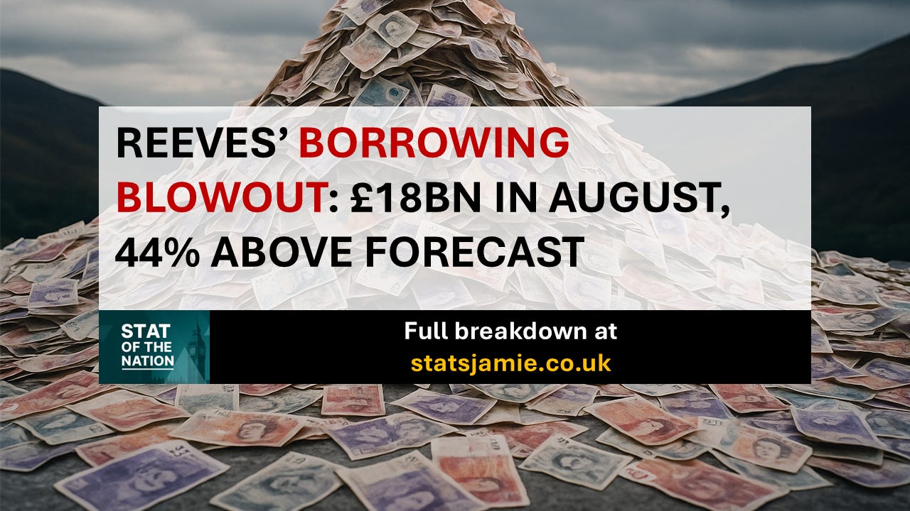 The UK Government borrowed £18.0 billion in August 2025. To put that in perspective: