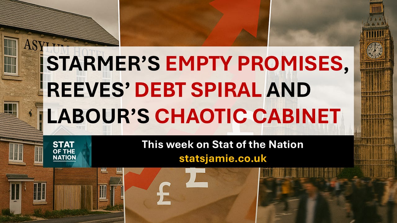 Welcome back to Stat of the Nation. This week the numbers — and the politics — tell a stark story: Starmer’s asylum hotel pledge unravels, Reeves drives Britain deeper into debt, and Labour reshuffles its Cabinet just a year in.
