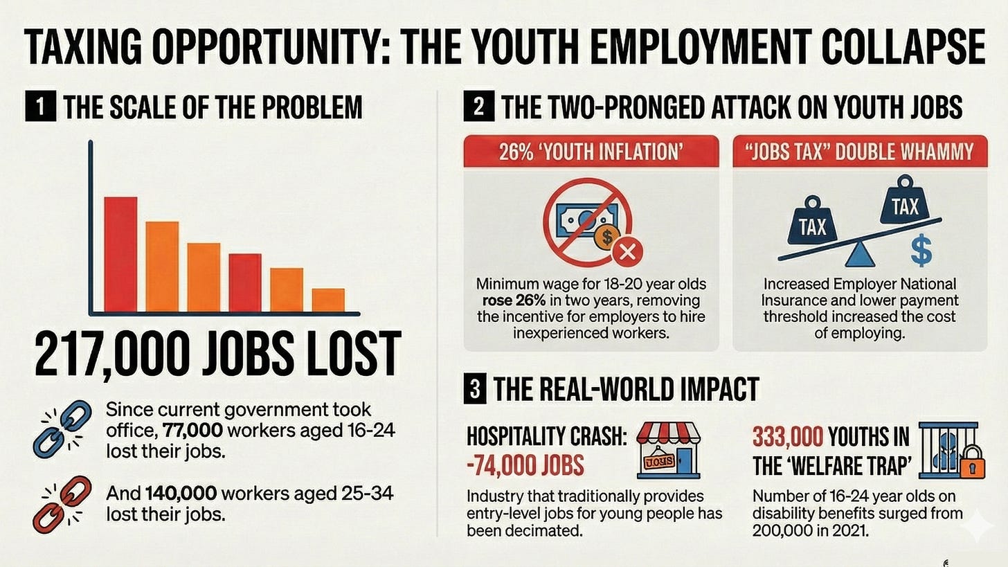 These aren’t just statistics. These are the Saturday jobs, the summer shifts, and the first steps on the career ladder that have been priced out of existence by government policy.