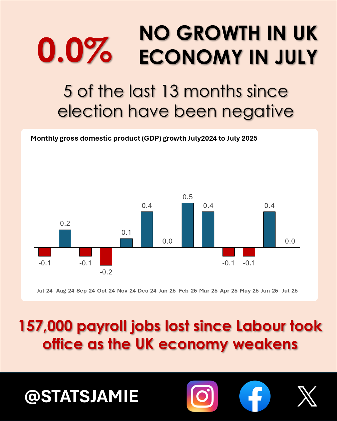 Since the election, we’ve had 5 months of negative growth out of 13 and lost 157,000 payroll jobs — the private sector being hit hardest. National Insurance hikes and corporation tax increases are reducing investment, cutting jobs, and choking recovery. If the government wasn’t pumping borrowed money into the economy, the July GDP figures would be worse. But every pound borrowed today just adds to the UK’s already record-high debt mountain.