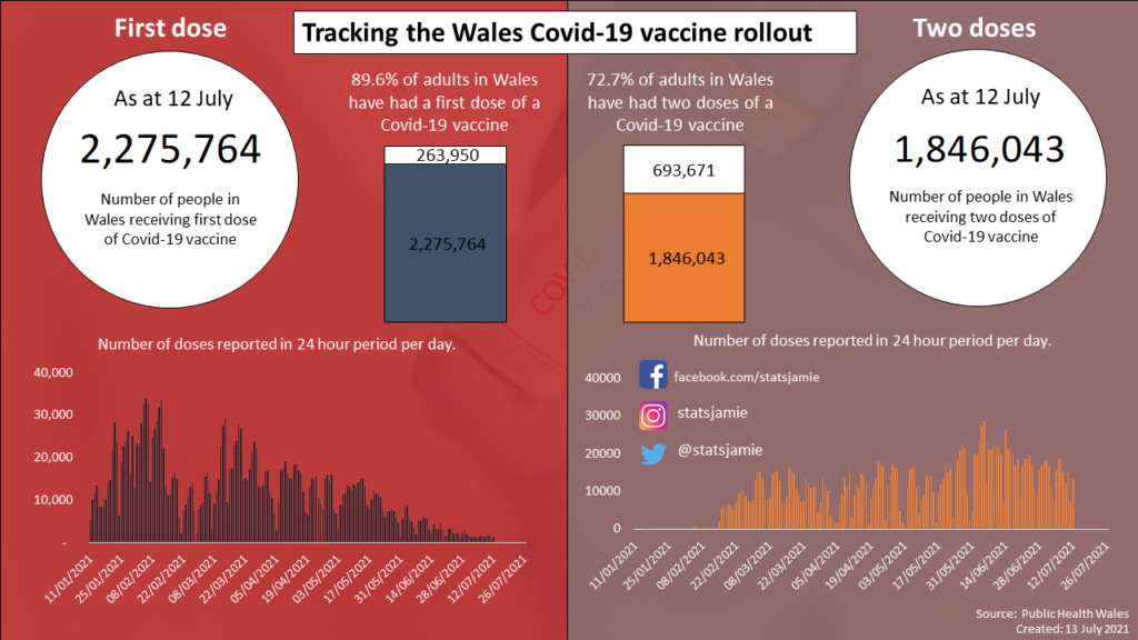 The vaccine game-changer means the population of Wales has significant antibodies. Almost 90% of adults in Wales have had the first dose of a vaccine with 73% having had both doses. Notably, for several weeks, those at the highest risk from the virus have had both doses.