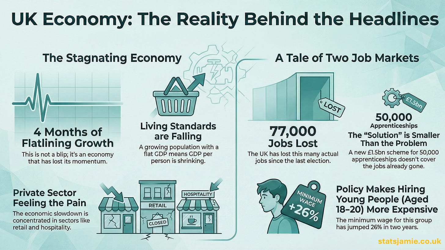 Four months of flatlining growth, 77,000 16-24 youth jobs lost since the election, and the quiet return of pandemic-era politics.